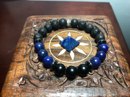 Celestial Shield Crystal Bracelet - Protection & Balance - Hematite - Lapis Lazuli - Obsidian