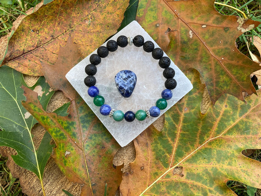 Balance & Emotional support crystal intention bracelet sodalite, green agate, black lava stone