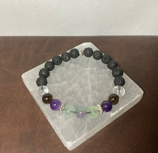 Chemo & Radiation Support Bracelet - Amethyst - Smoky Quartz - Clear Quartz - Rainbow Fluorite - Crystal Healing Jewelry