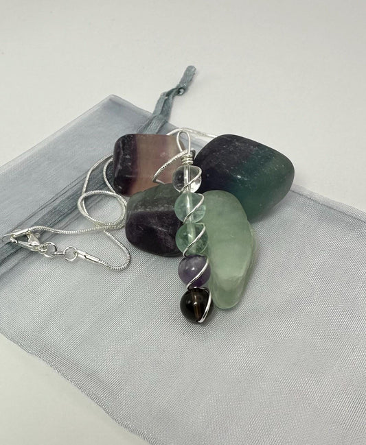 Chemo & Radiation Support Necklace - Copper Wire Wrapped Pendant - Crystal Healing Jewelry - Smoky Quartz - Amethyst - Fluorite - Clear Quartz