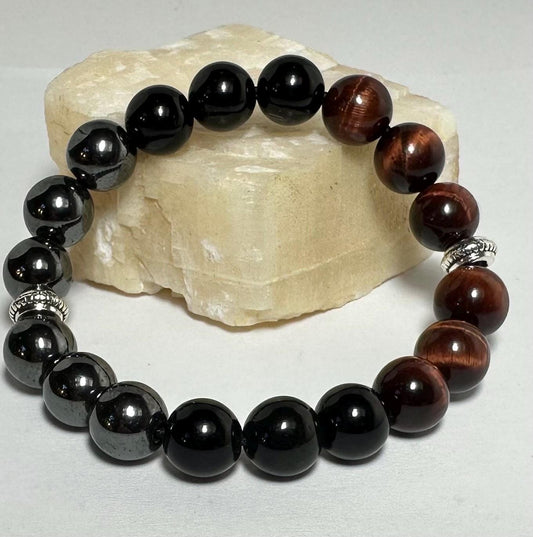 Children's Bully Barrier Bracelet - Hematite - Red Tigers Eye - Obsidian - Protection - Confidence