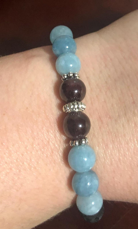 Peace & Tranquility Bracelet Crystal Healing Jewelry - Garnet - Aquamarine - January March birthstone