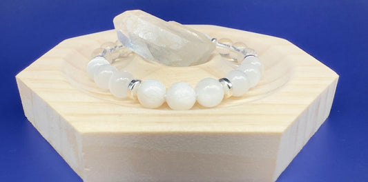 Full Moon Phase Crystal Bracelet Moonstone Selenite Clear Quartz Hematite Wrist Mala Gemstone Beaded Jewelry Lunar Energy Moonlight Luna