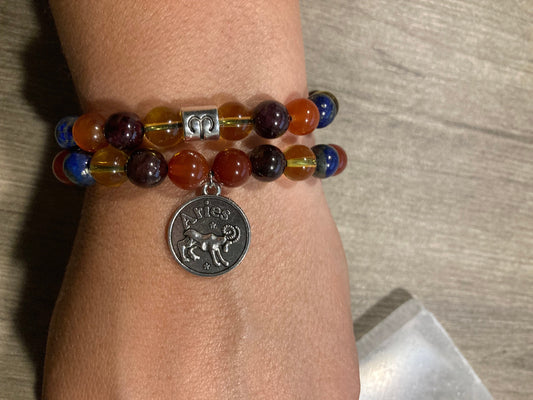 Aries Astrology Zodiac Bracelet - Carnelian - Garnet - Citrine - Lapis Lazuli - March April - Crystal Healing Jewelry