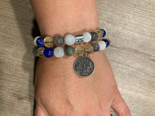 Libra Astrology Zodiac Bracelet - September October - Moonstone - Labradorite - Citrine - Lapis Lazuli