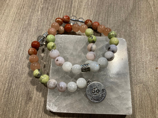 Cancer zodiac astrology bracelet - June July - Crystal Jewelry - Red Jasper - Sunstone - Pink Opal - Moonstone - Chrysoprase - Clear Quartz