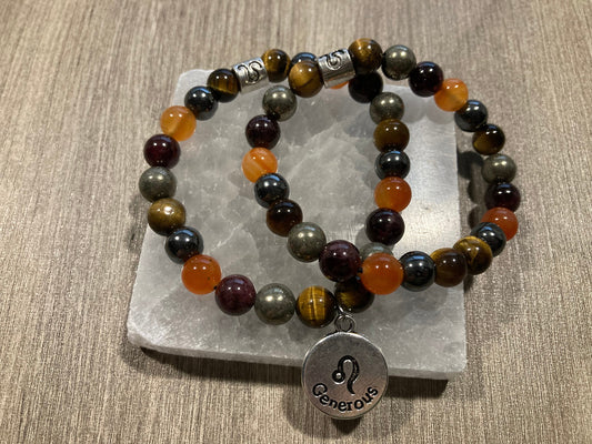 Leo zodiac astrology bracelet - July August - Crystal Jewelry - Tigers eye - Garnet - Pyrite - Carnelian - Hematite