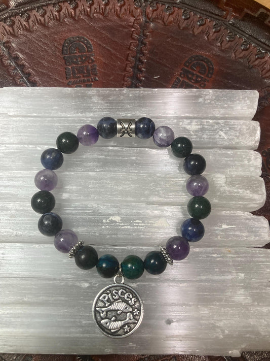 Pisces Astrology Zodiac Bracelet - February March - Sodalite - Amethyst - Bloodstone - Chrysocolla