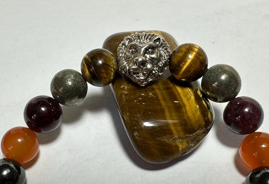 Leo Zodiac Astrology Bracelet - July August - Crystal Healing Jewelry - Tigers Eye - Garnet - Pyrite - Carnelian - Hematite