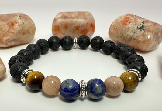Luna y Sol - Moon & Sun - Moonstone - Sunstone beaded bracelet - Lapis Lazuli
