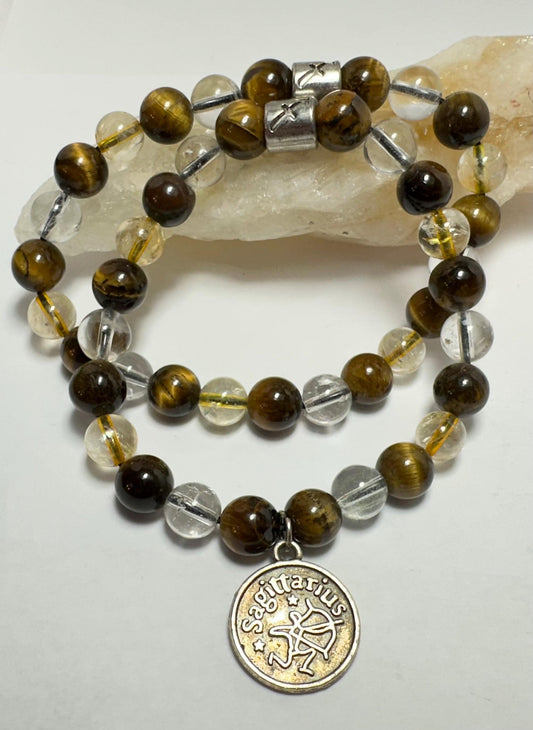 Sagittarius Astrology Zodiac Bracelet - November December - Crystal Healing Jewelry - Citrine - Tigers Eye - Clear Quartz
