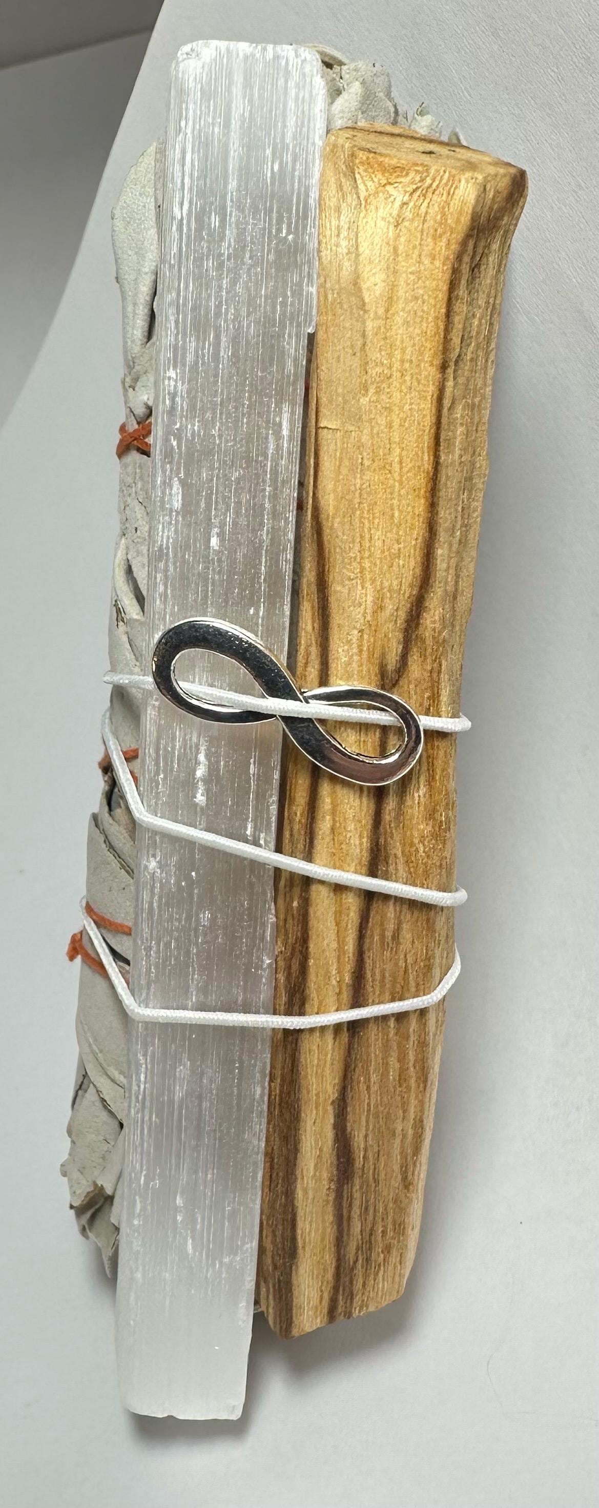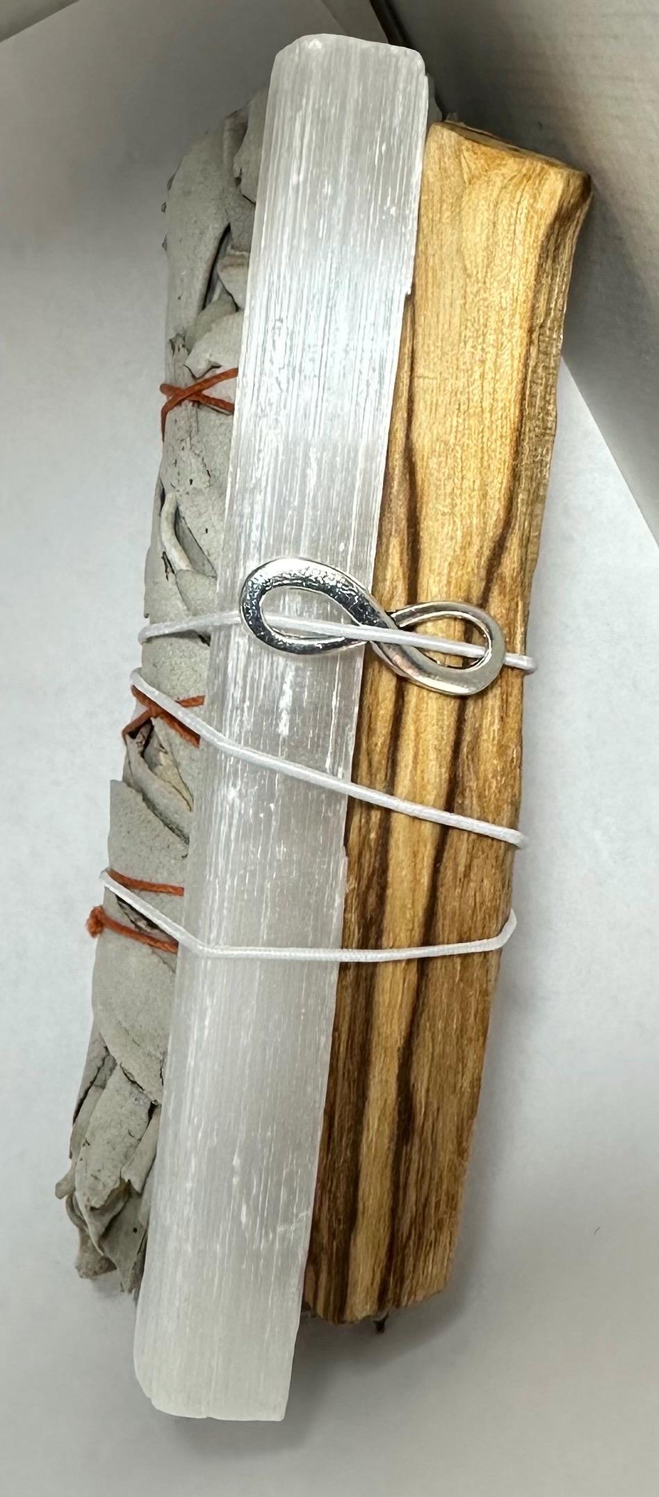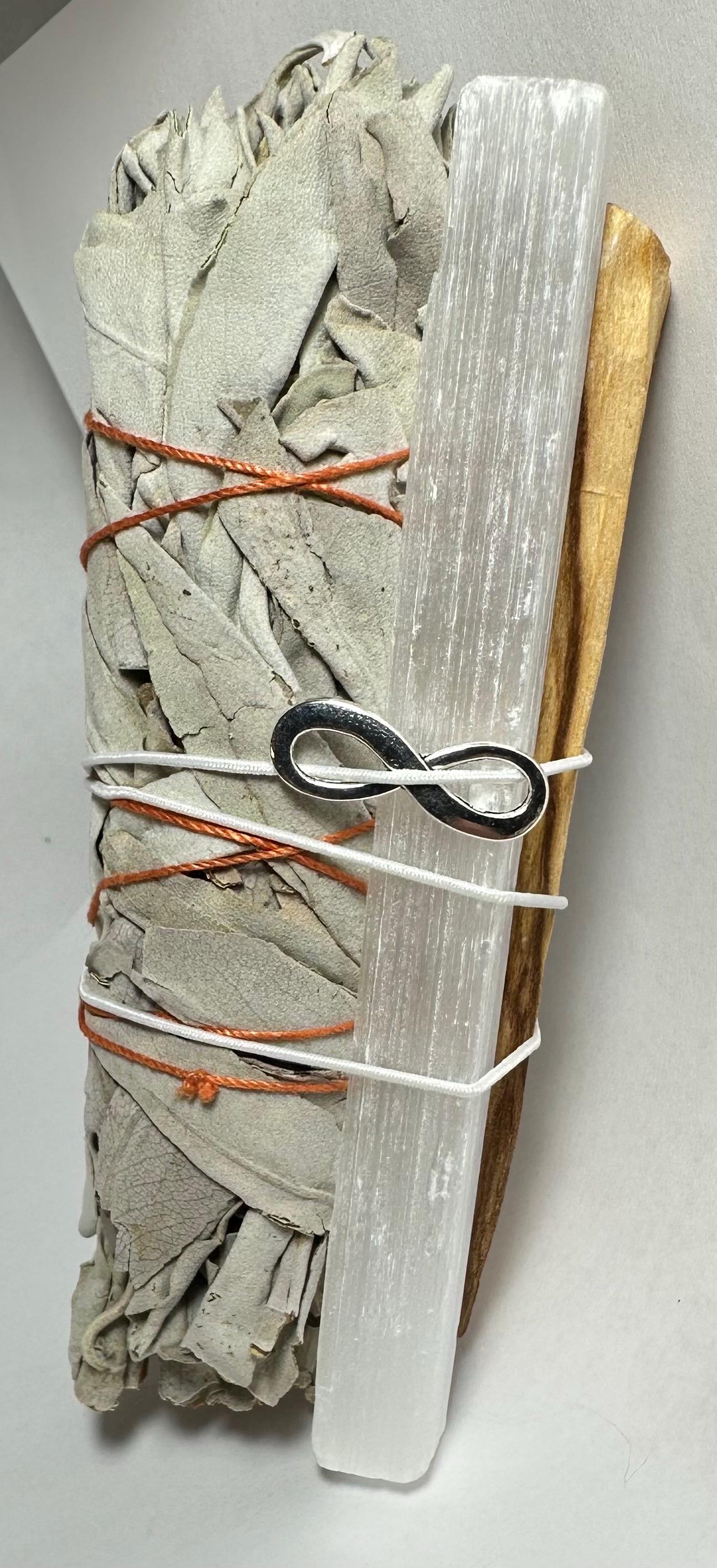 Crystal Cleansing Kit - White Sage, Selenite Wand & Palo Santo for Energy Clearing, Purification, Charging - Smudge kit - smudge stick