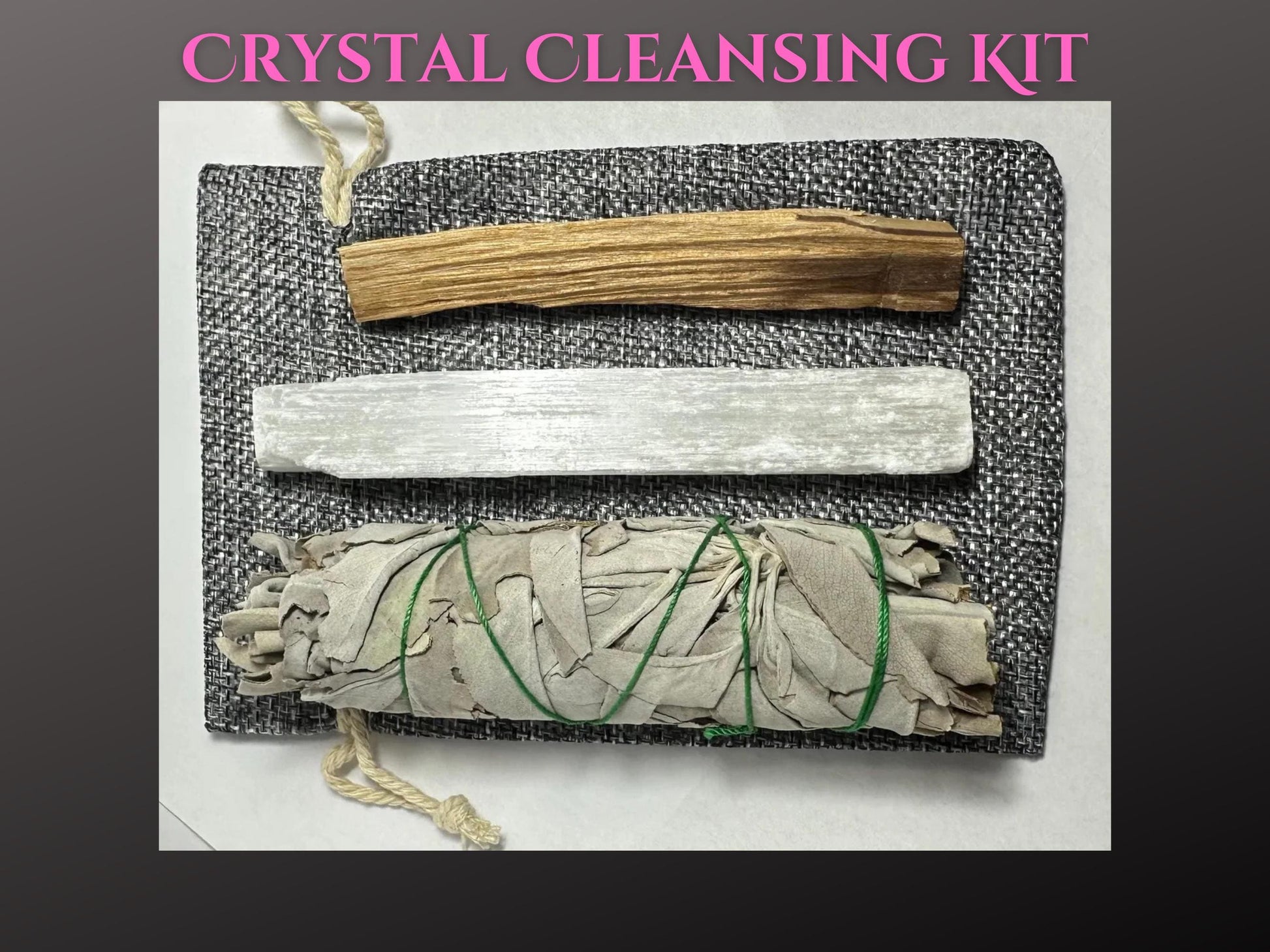 Cleanse and recharge your crystals, space, and energy with our Crystal Cleansing Kit, featuring three powerful tools: White Sage, Selenite, and Palo Santo. This all-in-one kit is perfect for those looking to restore balance and clarity to their environment.